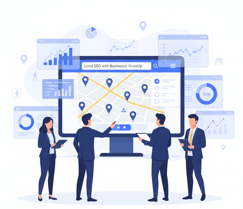 Businessic GrowUp ensures your business appears in local searches when customers are looking for services like yours. We optimize your Google Business Profile, create location-focused content, manage citations, and build authoritative local backlinks. By improving local relevance, trust, and engagement, we help your business rank higher, attract nearby customers, and convert search traffic into real-world growth.